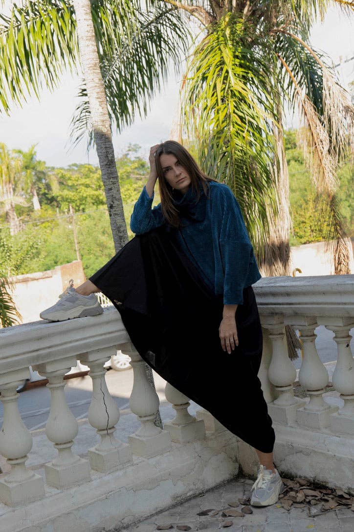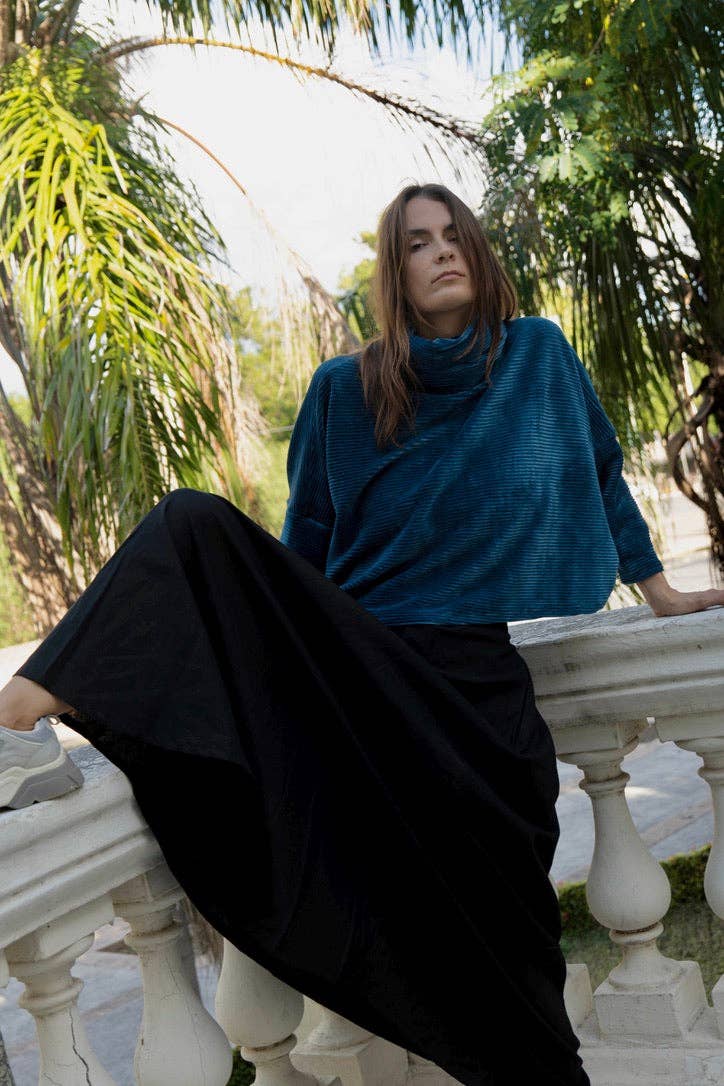 The Amsterdam Oversized Sweater: a reimagined classic for AW25. This fan-favorite returns in our luxurious ribbed velvet, offering a cozy oversized fit and elegant chimney neckline.