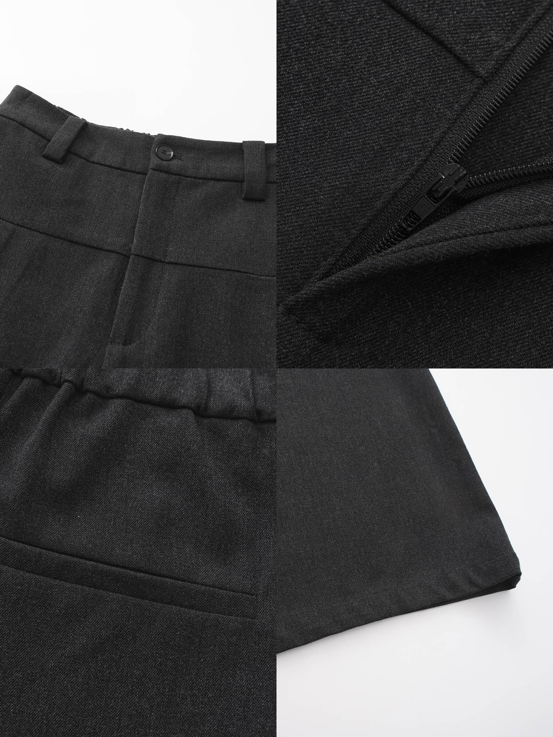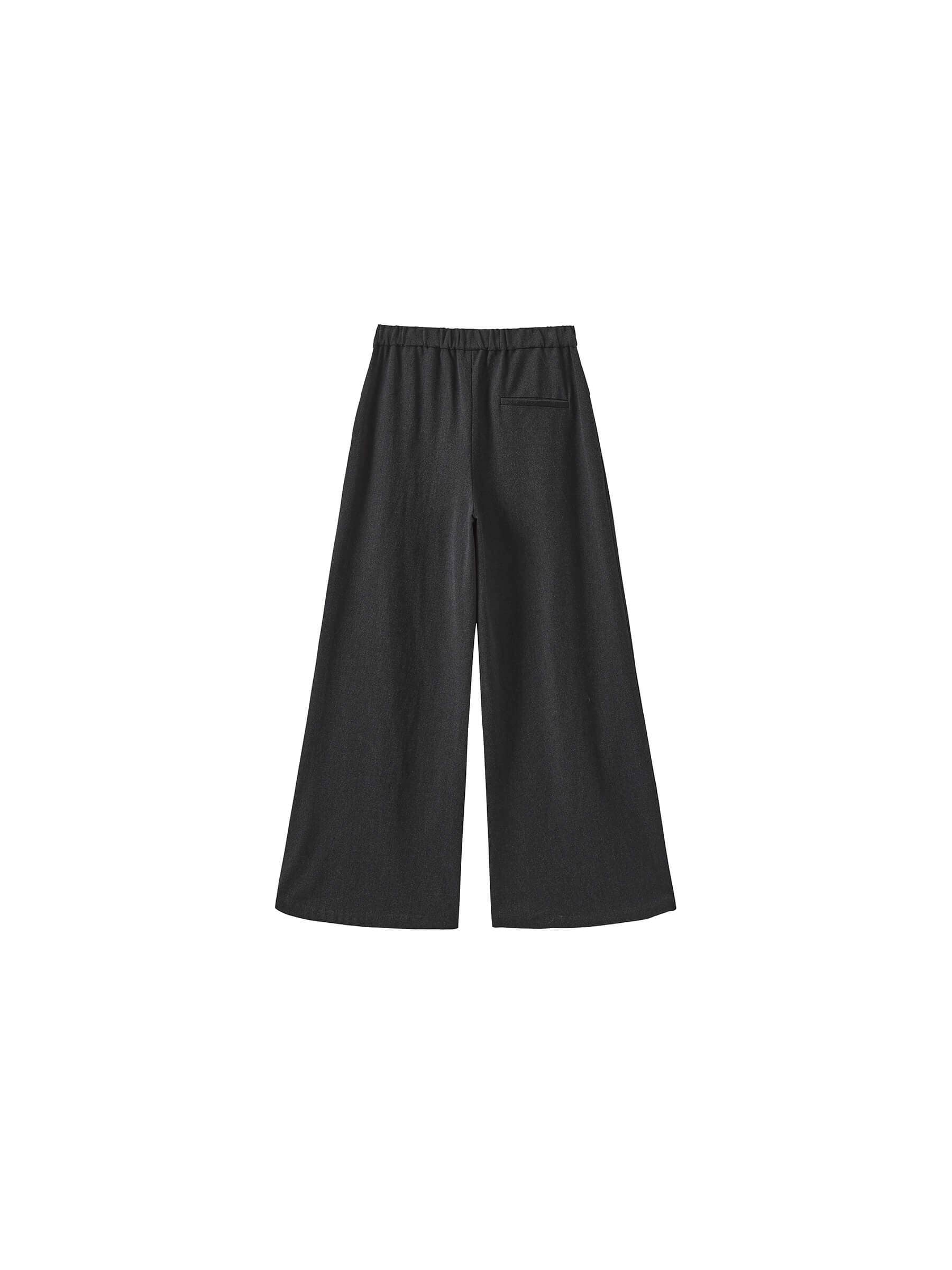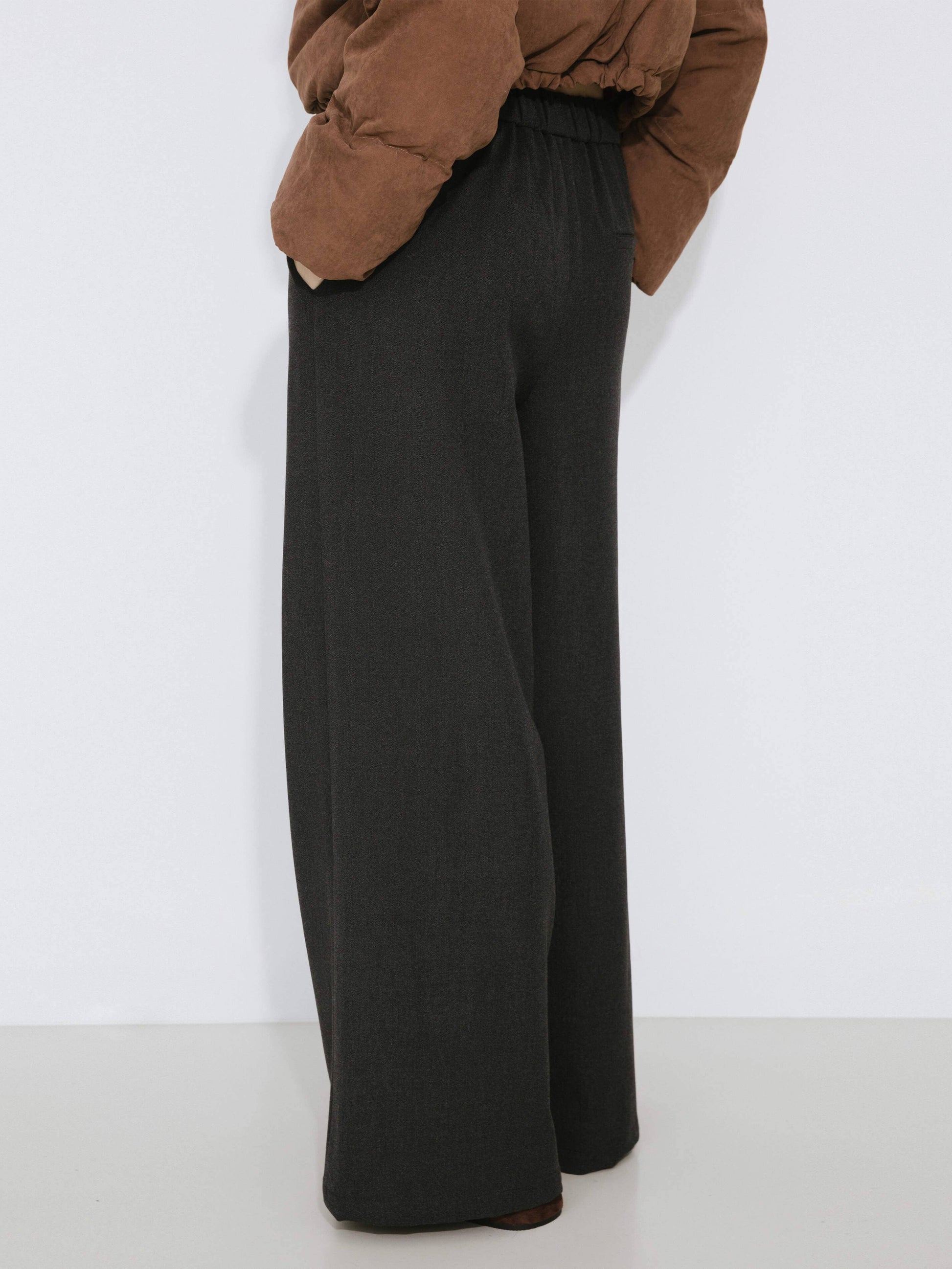 Casual pants in black. Wide leg model, concealed front zip fastener. Side pockets. The fabric composition is 68% Polyester 29% Viscose 3% Spandex. Model wears size L, which is suitable for UK size 12.